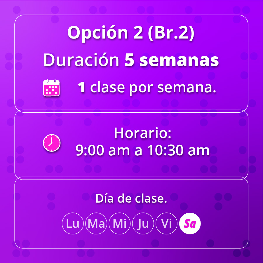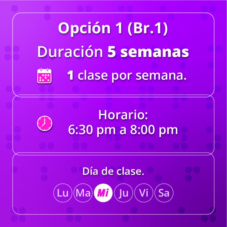 Para cursos de Braille desde las 6:30 pm y Sábados desde las 9 am.